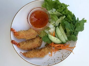 Deep fried prawns and sweet chili sauce (3 pcs)