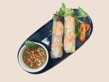 Vi Việt sommerruller med kylling, rejer, risnudler, salat og spicy kokos-hoisin-sauce (2 stk)