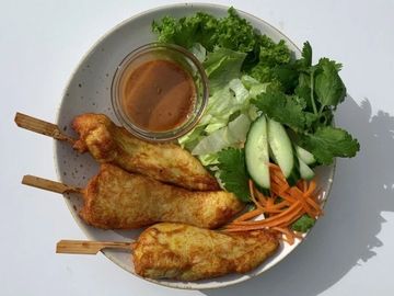 Kyllingespyd med salat og jordnød-kokos-sauce (3 stk)