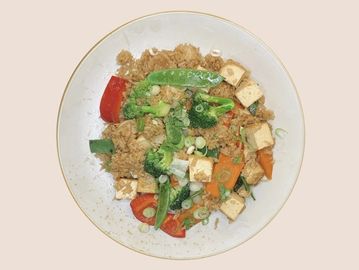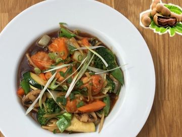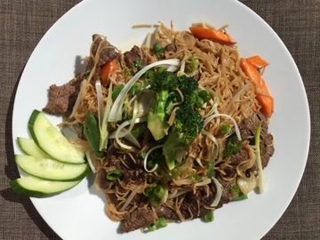 Spicy soya-oyster sauce and lemongrass, vegetables, with Chicken or tofu or Beef: 129 - 138 Kr.