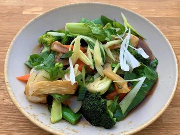 Stegte grøntsager med soyasauce og ingefær / Fried vegetables with oyster sauce and ginger.
