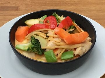 Grøn karry med kylling og grøntsager // Green curry with chicken and vegetables.