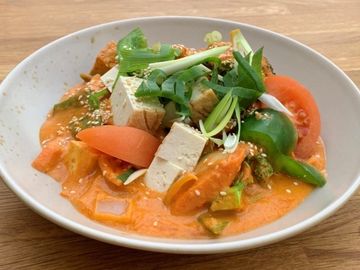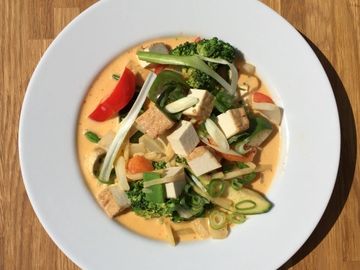 90: Cà ri đỏ / Let spicy rød karry med grønt og tofu / Light spicy red curry and vegetables with tofu.